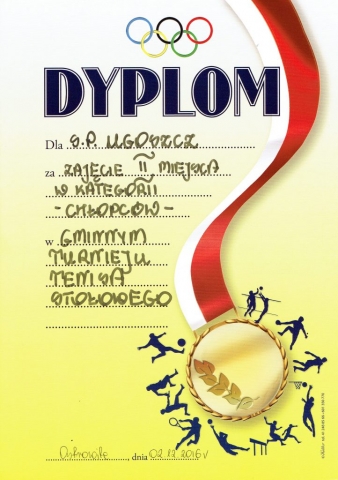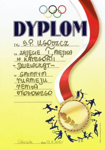 Drugiego grudnia drużyna tenisistek ze Szkoły Podstawowej w Ugoszczu udała się na turniej gminny do Ostrowitego. Kwalifikacje powiatowe w kategorii dziewcząt wygrały: Emilia Dędza i Maria Hernik z naszej szkoły. Drużyna chłopców w składzie Dawid Seweryński i Igor Rygielski zajęła drugie miejsce. Gratulacje należą się również najmłodszym naszym uczestniczkom: Zuzannie Rumockiej i Marcie Kiełkowskiej które zajęły czwarte miejsce.