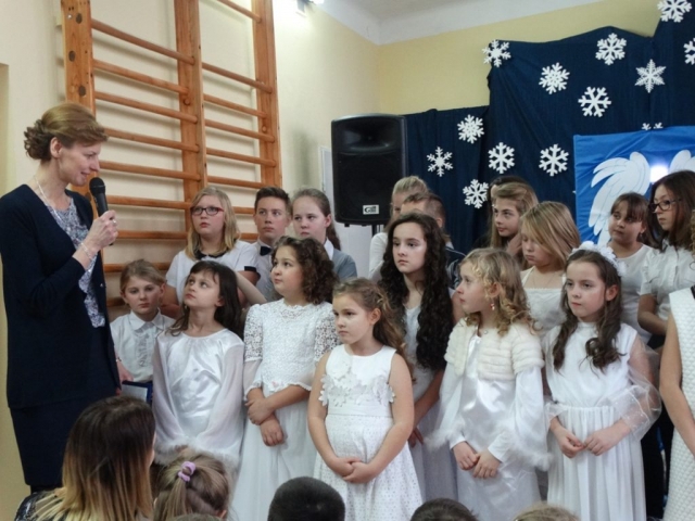 Święta Bożego Narodzenia to czas szczególny, chociaż codziennie dzieje się krzywda, giną niewinni ludzie, rodzi się przemoc i nienawiść. Świat codziennie dostarcza kolejnych słów na sensacyjne nagłówki gazet. Czy Bożonarodzeniowy Duch Świąt jest dzisiaj zupełnie bezsilny? Na to pytanie próbowano znaleźć odpowiedź podczas spotkania wigilijnego, które odbyło się w naszej szkole 20 grudnia. Spotkanie niezwykle bogate w doznania artystyczne, ponieważ pokazano trzy programy, w których mogli zaprezentować się uczniowie.