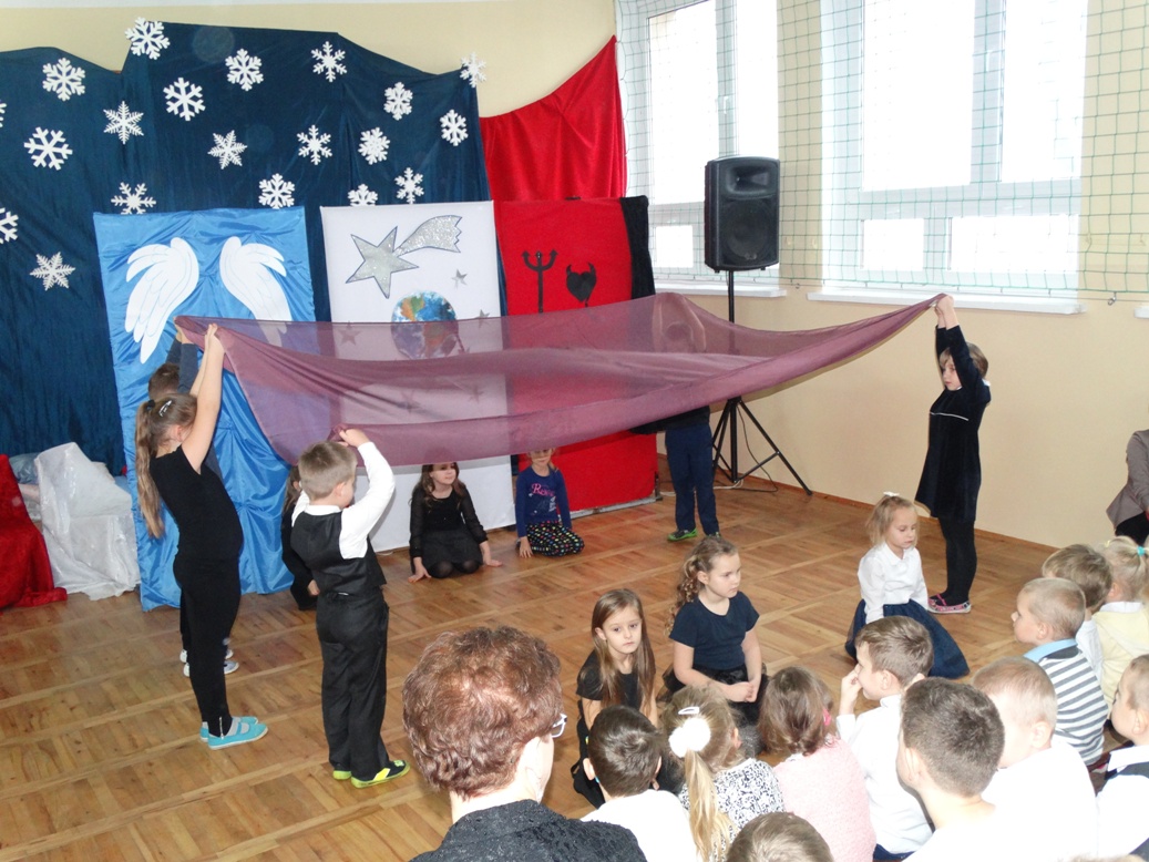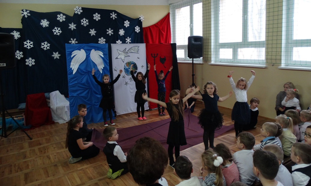 W szkole istnieje zespół taneczny, prowadzone przez panią Teresę Malinowską. Dzieci wystąpiły w dwóch układach z szarfami. Grupa młodsza z klas 0 – II zatańczyła ,,Świąteczną kompozycję” a klasa III wykonała układ do przeboju Leonarda Cohena ,,Hallelujah”.