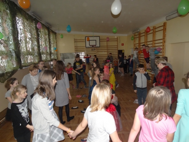 W miniony wtorek odbył się w naszej szkole bal karnawałowy. Sala gimnastyczna została przez uczniów przystrojona balonami i serpentynami. Dzieci, zwłaszcza te młodsze z dumą prezentowały swoje stroje karnawałowe. Przebierańcy z ochotą uczestniczyli w tańcach oraz organizowanych konkursach takich jak: taniec na gazecie, taniec z balonem czy wyścigi w workach.