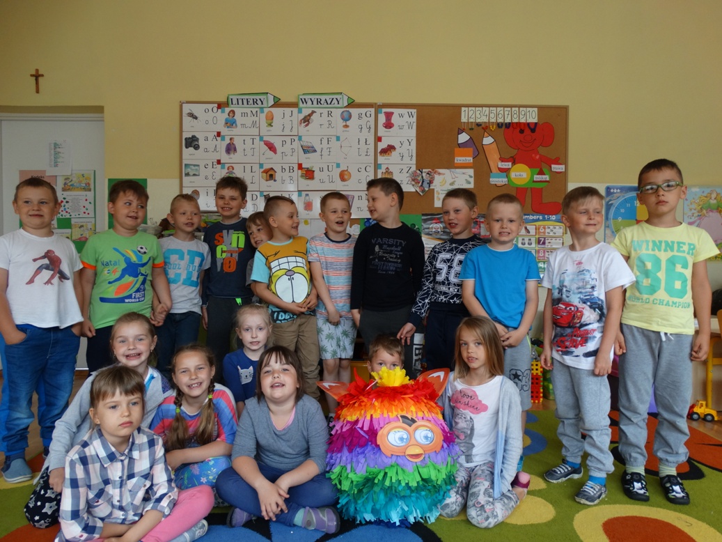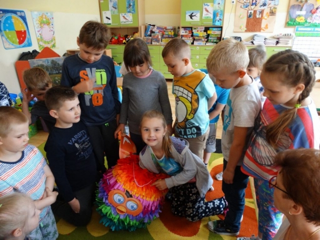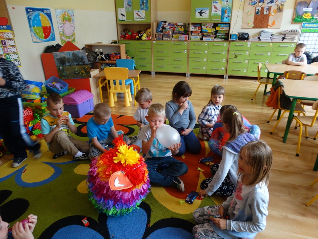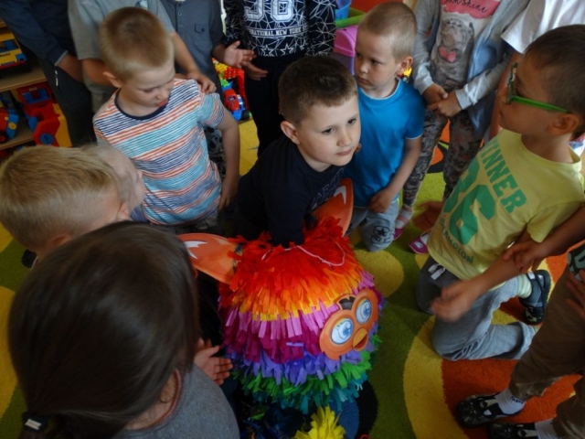 1 czerwca to bardzo radosny dzień dla wszystkich dzieci. Taki też był dla naszych milusińskich z zerówki. Dzień obfitował w wiele atrakcji. Największą niespodzianką była wykonana przez jedną z mam kolorowa piniata angry birds pełna smakołyków. Dzieci miały możliwość sprawdzenia swoich umiejętności podczas dmuchania, wiązania i ozdabiania balonów. Wspólne zabawy i śpiew towarzyszyły dzieciom w ciągu całego dnia.