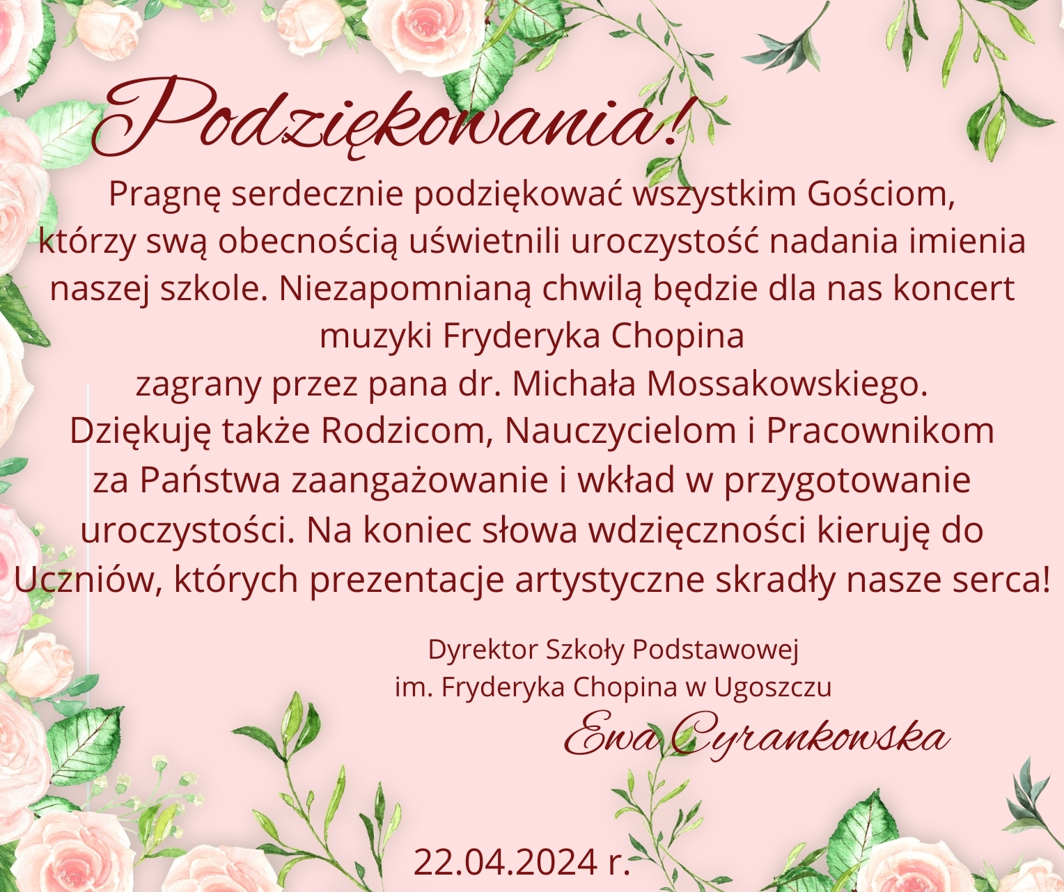 Uroczystość nadania Szkole Podstawowej w Ugoszczu imienia Fryderyka Chopina